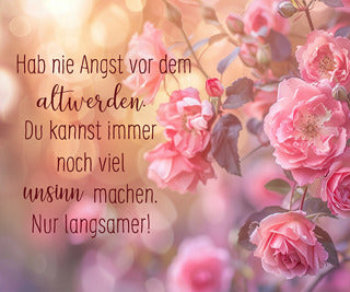 Kleines Schild mit Spruch "Hab nie Angst vor dem alt werden. Du kannst immer noch viel unsinn machen. Nur langsamer!"