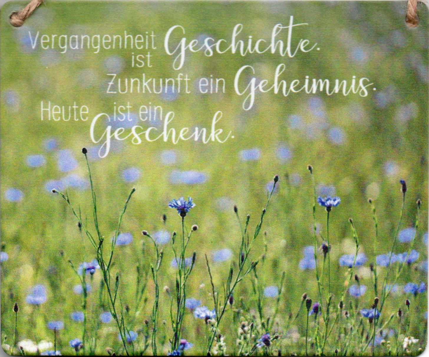 Inspirierendes Metallschild zum Aufhängen mit dem zeitlosen Spruch "Vergangenheit ist Geschichte. Zukunft ein Geheimnis. Heute ist ein Geschenk." Das robuste Schild im Format 12x10 cm bringt eine motivierende Botschaft in jeden Raum. Perfekt als Dekoration für Wohnzimmer, Büro oder Schlafzimmer – ein nachdenklich stimmender Blickfang, der täglich an das Wesentliche erinnert.