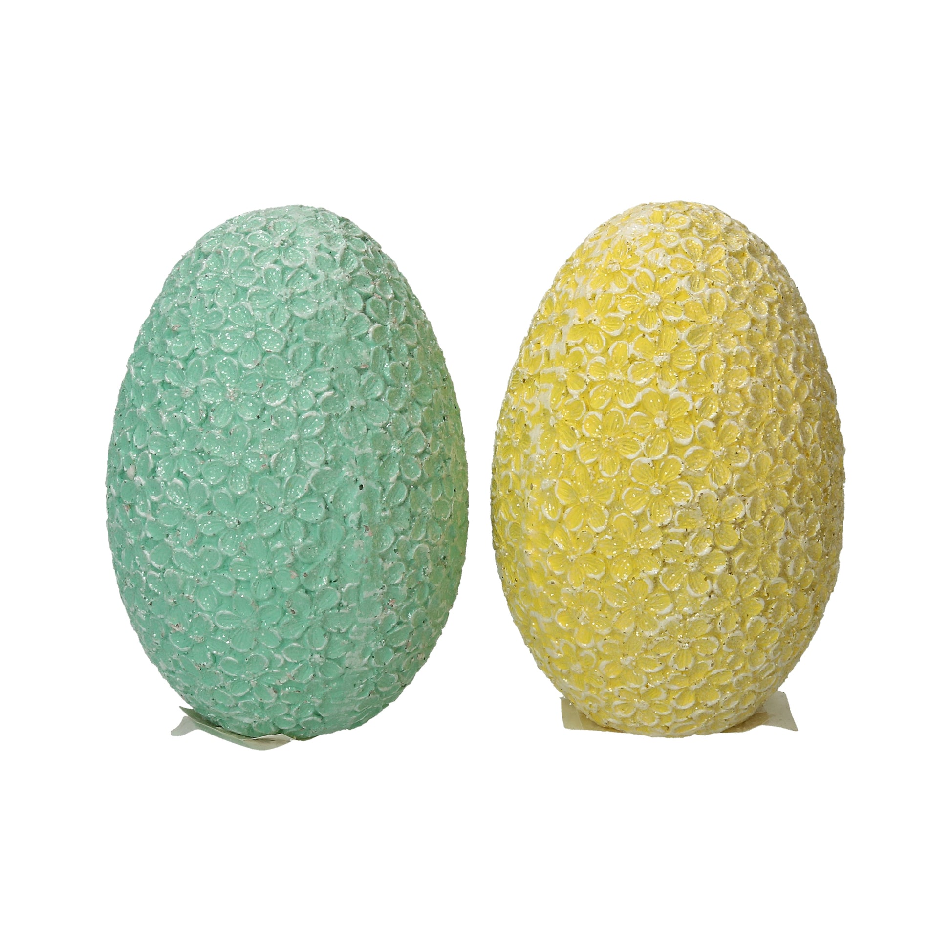 Das Blütenei aus Poly mit den Maßen 7,5x11 cm in den Farben Gelb und Grün ist ein attraktives Dekorationselement. Es steht stabil und eignet sich hervorragend für frühlingshafte Arrangements oder als Teil Ihrer Osterdekoration.