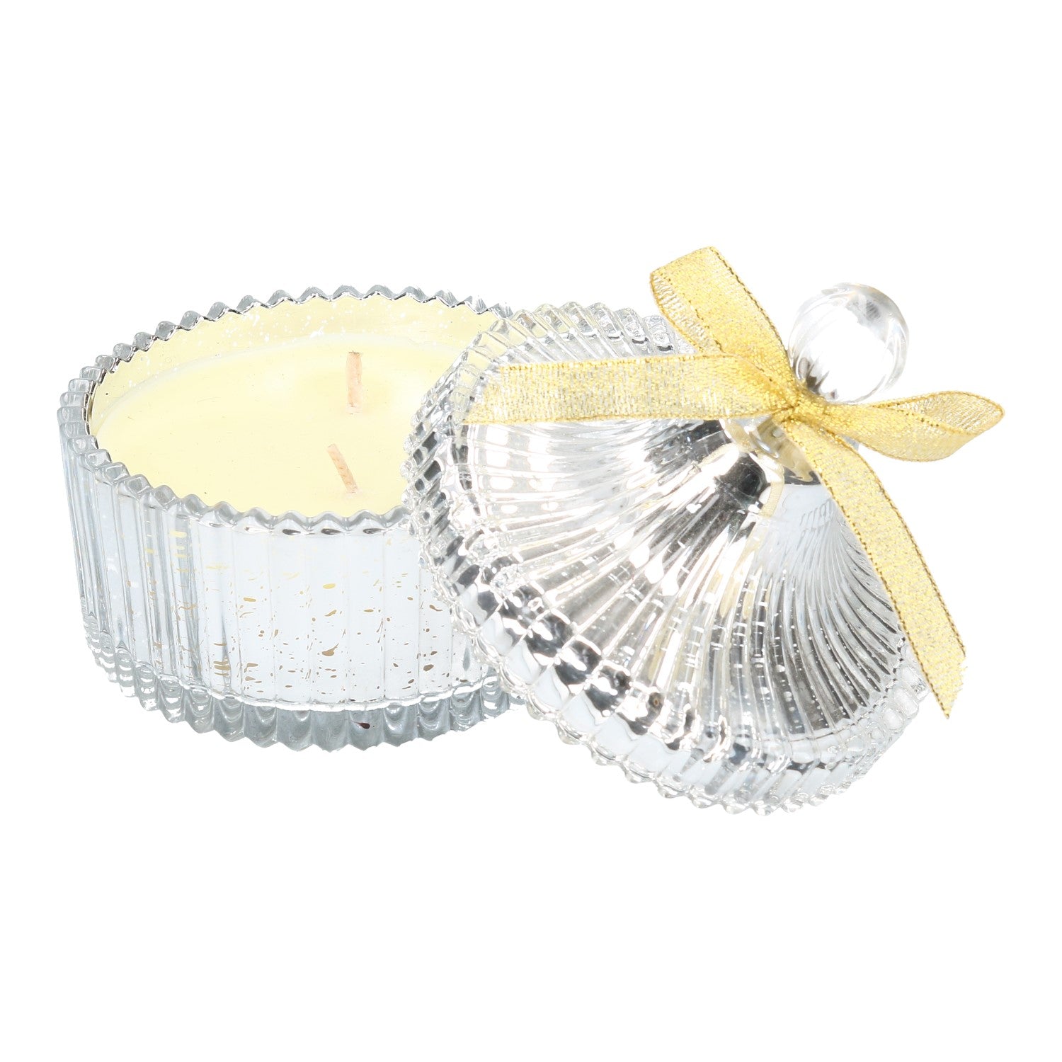 Die Duftkerze im silbernen Glas hat eine elegante Form mit den Maßen 13 cm in der Höhe und 10 cm im Durchmesser. Ihr schimmerndes Design verleiht jedem Raum eine stilvolle Note, während der angenehme Duft eine entspannende Atmosphäre schafft.