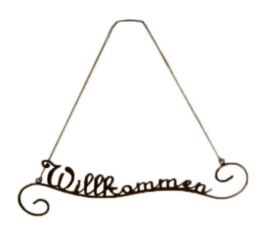Hänger aus Metall mit dem Schriftzug "Willkommen". Maße: 15x54 cm.