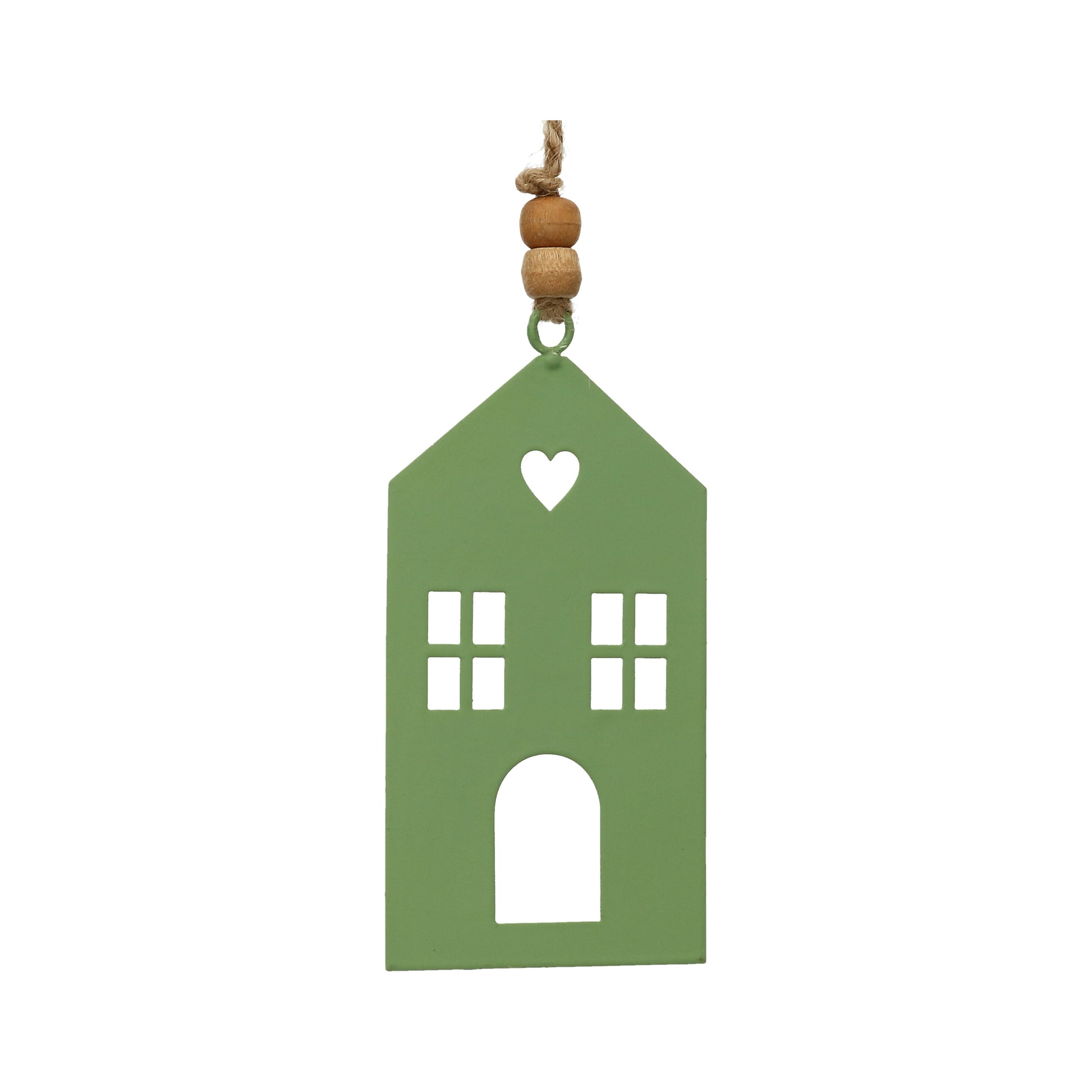 Dieses dekorative Haus aus Metall in Olivgrün misst 7 x 12 cm und verleiht jedem Raum eine moderne, natürliche Note. Die hochwertige Verarbeitung sorgt für Langlebigkeit, während die dezente Farbgebung vielseitig kombinierbar ist. Ideal als eleganter Anhänger oder stilvolles Wohnaccessoire.