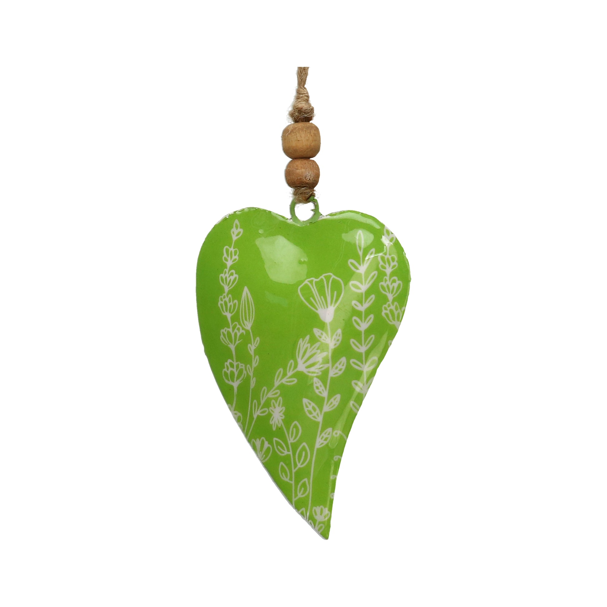 Dieses Herz aus Metall in Olivgrün misst 7 x 12 cm und besticht durch ein filigranes weißes Blumenmuster. Es kombiniert robustes Material mit dekorativer Eleganz und eignet sich ideal als stilvolles Accessoire für Wohn- oder Gartendekorationen. Die zurückhaltende Farbgestaltung und das feine Design verleihen ihm zeitlose Attraktivität und Vielseitigkeit.