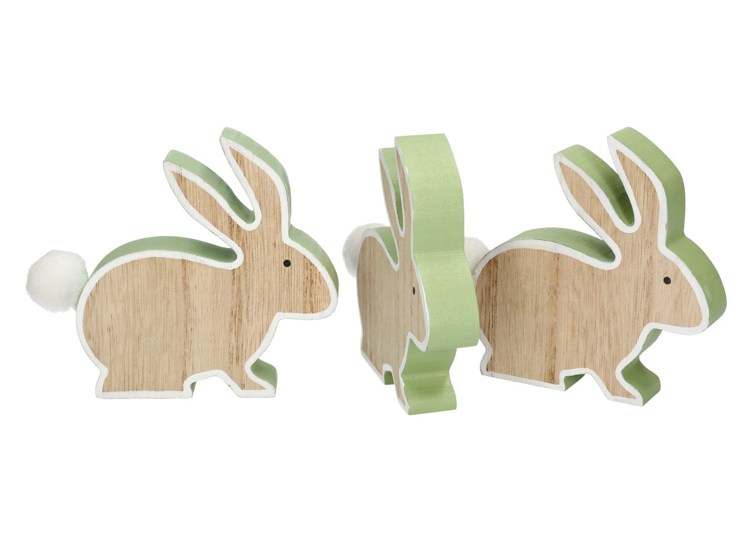Der Holzhasen mit Puschel misst 12x10x2 cm und ist eine bezaubernde Dekoration für Ihr Zuhause.
