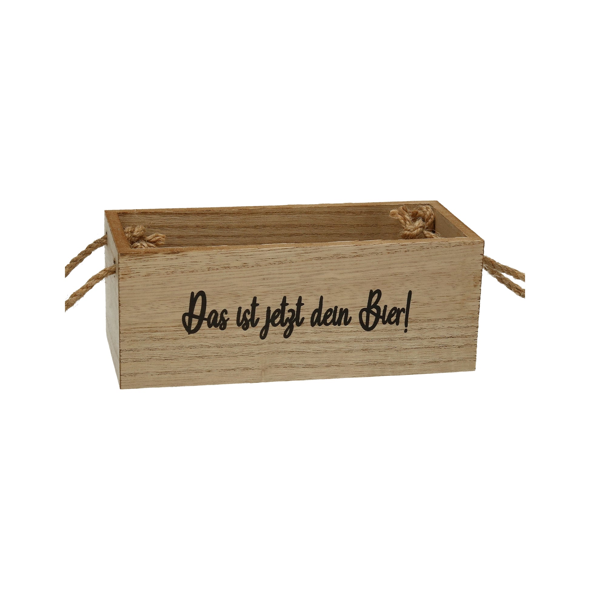 Entdecken Sie unsere humorvolle Holz-Kiste mit den Maßen 18x8x7 cm, die mit dem witzigen Spruch „Das ist jetzt dein Bier“ beschriftet ist. Diese Kiste ist nicht nur ein praktisches Aufbewahrungsobjekt, sondern auch ein originelles Dekorationsstück, das für Lacher sorgt und eine gesellige Atmosphäre schafft.