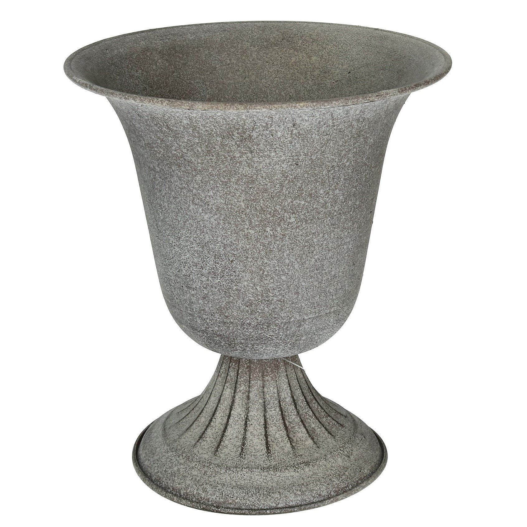 Grauer Pokal aus Metall mit angerauter Oberfläche. Maße: 15,5 x 18,5 cm. Mindestbestellmenge 2 Stück